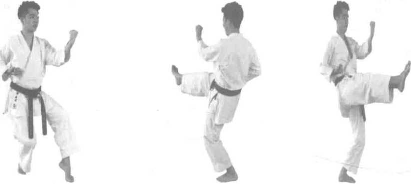 图263 (背面) 左脚斜后方旋转 成猫足立左手中 段外格挡图263 (正面)图264 (背面) 右腿中段前蹴, 双手不变图264 (正面)图265 (背面)右脚上步落体成基 本立右手中段冲拳图265 (正面)图266 (背面) 基本立站立不动 左手中段冲拳图266 (正面)图267 (背面)身体右转90。成猫 足立右手外格挡图267 (正面)图268 (背面)左腿中段前蹴,上肢不变图268 (正面)图269 (背面) 左腿落地,成 基本立左手中 段冲拳图269 (正面)