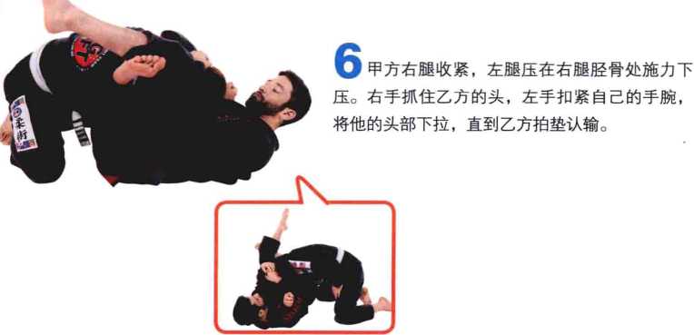 过乙方的左肩,与自己的左腿缠绕,锁住对方的头