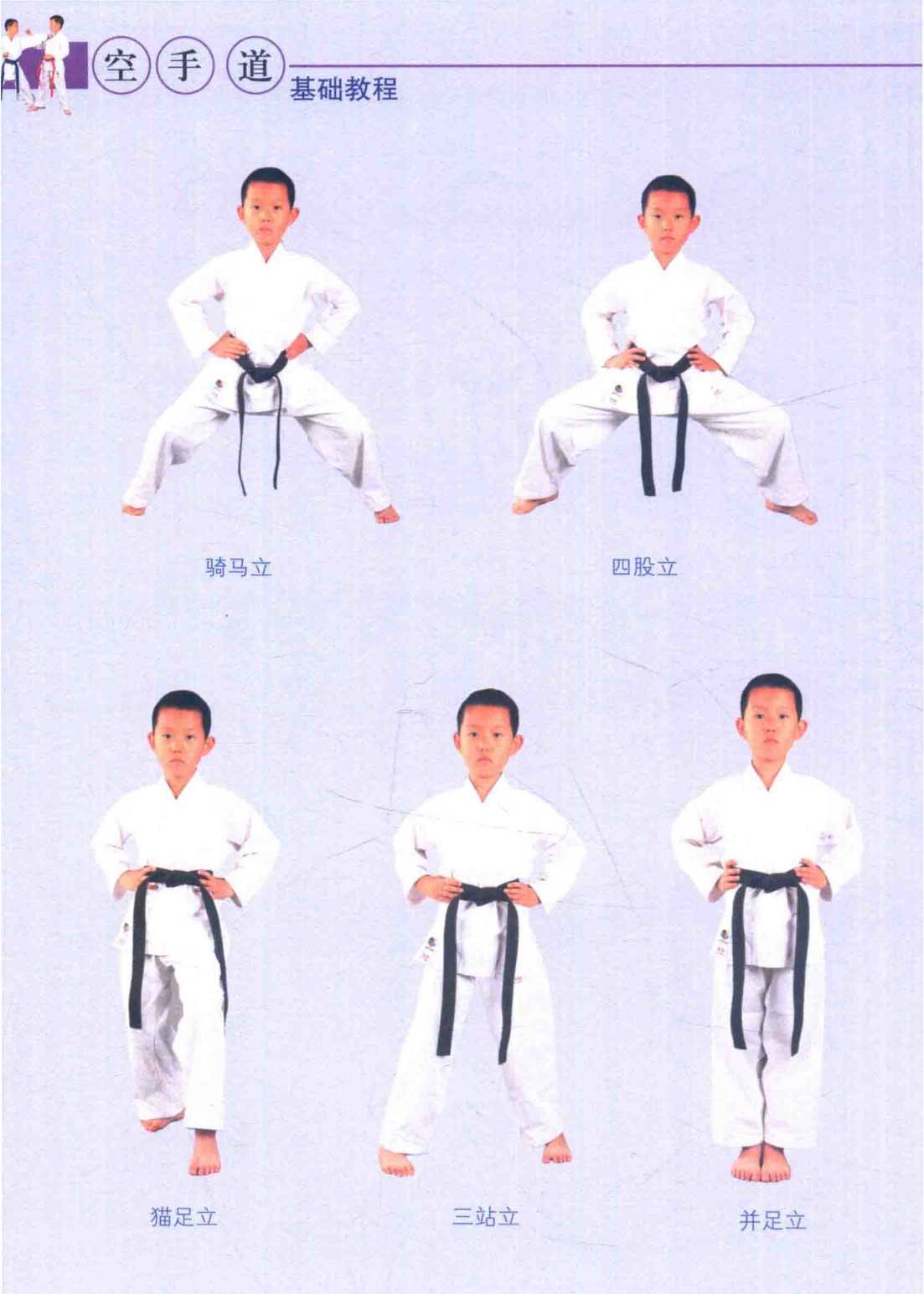 中文意思 日文拼音 中式读音 字立(结立) 木丝毕达期 八字立 哈气及达期 前屈立 珍酷刺达期 骑马立 巴达期 四股立 西考达期 猫足立 奶考阿西达期 三站立 商庆达期 并足立 孩少酷达期 交叉立 考洒达期 后屈立 考酷刺达期 平行立 孩考达期 交叉立 后屈立 平行立