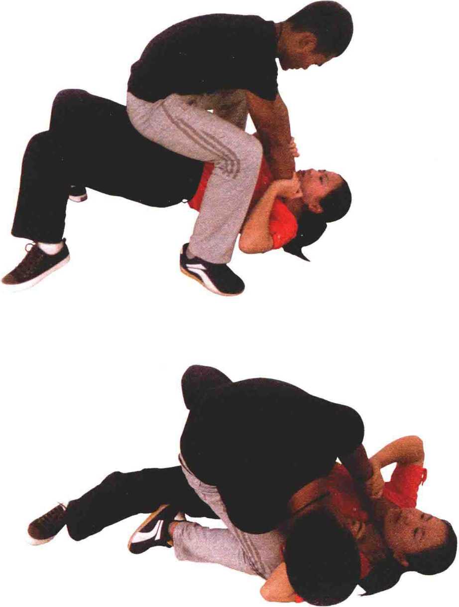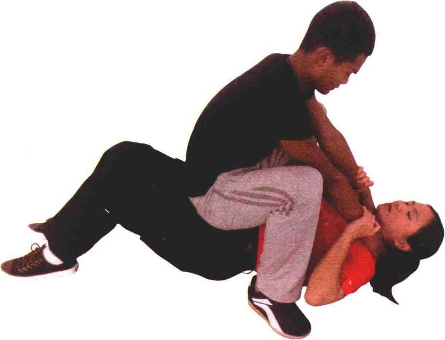 (1)当被对方掐喉推倒并坐压在腹部时。(2)迅速将双腿回收向上猛挺其腹部到达最高点后身体猛然向左转。(3)趁对方失重之时双手向对方倒地的方向猛推其手腕以达解脱目的。要点顶腹要有力变向要迅速变向、推腕要协调、连贯。