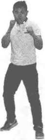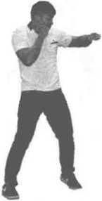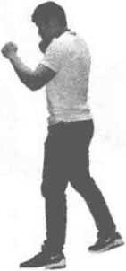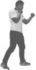 左直拳动作要领预备姿势为正架势即左脚、左手在前(以下均同),右脚微蹬地面重心微向前脚移动。同时左拳直线向前冲出力达拳面(见图4-1-1、图4-1-2)