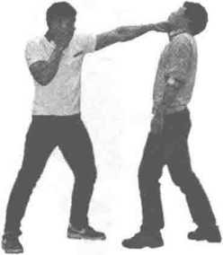 实例防身动作应用当与歹徒站立距离较近时可用直拳主动进攻其面部或心窝等要害部位(见图4-1-5图4-1-6)