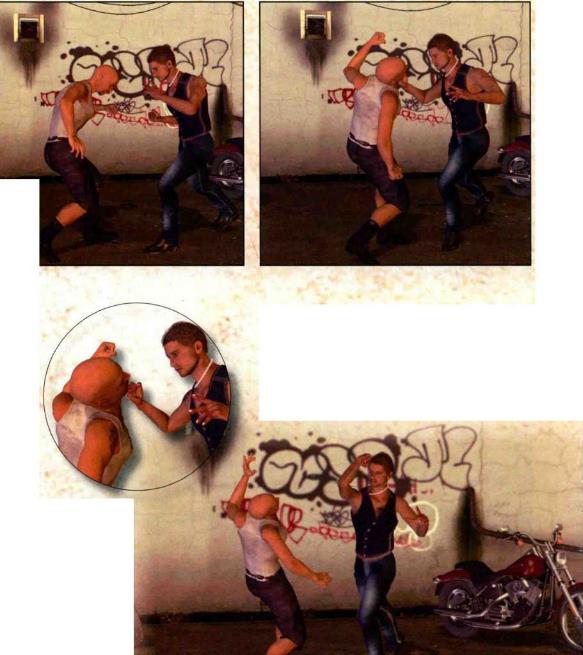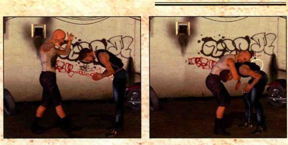双方于街头发生冲突对方气焰嚣张得理小饶人我谦恭礼让小断地道歉。180针对手臂圈锁脖颈的防御与反击方法当我鞠躬致歉时对方突然由正面伸出右曹圈城住我的蘑颈其左手抓住自己右手腕部准备而后仰身以断头台技术降服我。我迅速南右丰自下而上撩拍对方裆部在其疼痛难忍而放松对我脖颈控制的时候左手使劲推开其右侧手臂我时尊头颈向后撤出- , 1 181-挣脱控制的一刹那我猛然向左侧拧转身躯带动右臂快速出击,以右手上勾拳猛击对方下颌。182针对手臂圈锁脖颈的防御与反击方法美式街头自卫防身术徒手篇