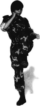 3-243-24大腿里合小腿外翻脚朝向攻击方向脚尖内勾上体侧倾(图3-25)。大腿里合小腿外翻脚朝向攻击方向脚尖内勾上体侧倾(图3-25)。3-253-25