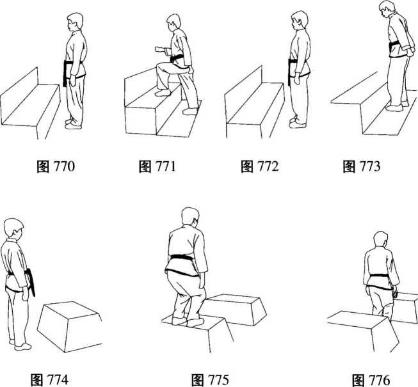 在规定的时间内完成一定数量的跑、跳台阶脉搏数为180次以上分间歇1-3分钟后进行下一组练习(图770-776)