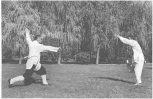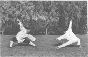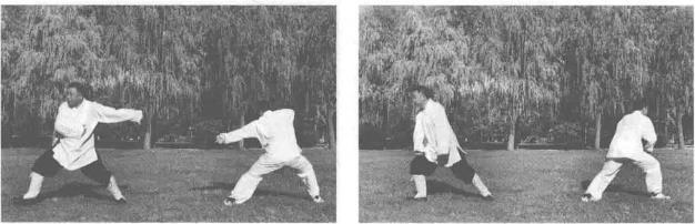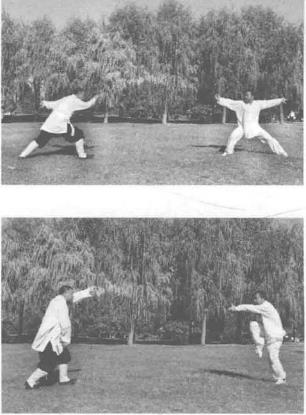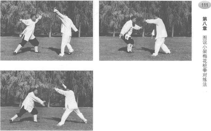 第八章图说小架梅花桩拳对练法1第八章图说小架梅花桩拳对练法1甲方抽撤步变左拗势乙方撤步变左拗势。双方对视。第八章图说小架梅花桩拳对练法1第八章图说小架梅花桩拳对练法1第四十四式左拗势变右小势的变化甲方撤步变小势乙方进步变小势。双方对视。第四十五式右小势变右败势的变化甲乙双方原地打败势。双方对视。小架梅花桩拳——蒋法之第四十六式右败势变左大势的变化甲乙双方转身抄大势。目视对方。
