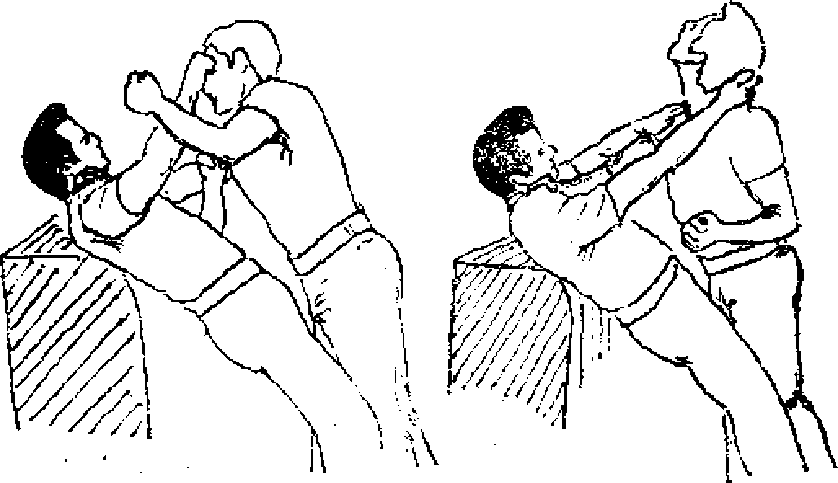 当对方从背后抱住自卫者的上体和上臂时自卫考