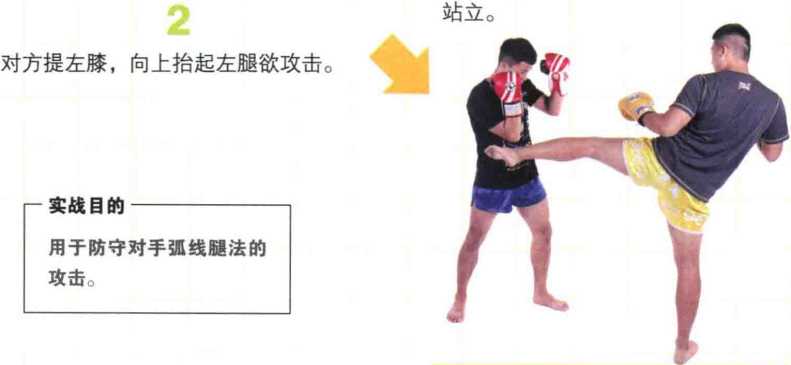 (2)右抱抄防守(2)右抱抄防守对方向上抬起右腿攻击使用右侧踢从右侧攻击我方腰腹部。对方向上抬起右腿攻击使用右侧踢从右侧攻击我方腰腹部。实战目的 实战目的 用于防守对手右腿袭来的孤线攻击。用于防守对手右腿袭来的孤线攻击。