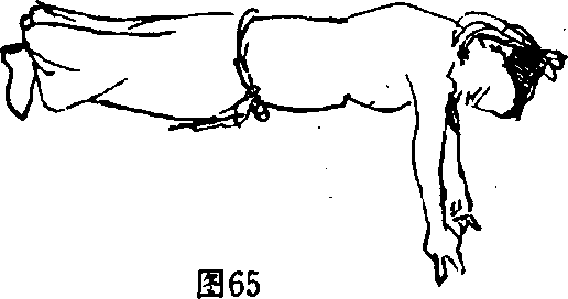 也叫猫功是一种锻练五指或食指、大拇指功力的一种简易的训练方法。(1)两掌及两脚尖撑地身体挺直不屈只用两臂屈伸带动全身上下回环起落形似腑卧撑。(图63)(2)练一时期后渐渐用五指撑地如上法练之。(图64)(3)最后用大拇指和食指撑地如上法练之。(图65、66)图64图66要领(1)手臂上下屈伸时除手指和前脚掌着地外,身体其余部位均不能接触地面。(2)练习时也可以左右跳动前后跳动以增加指力。(3)练习时要求力达手指。