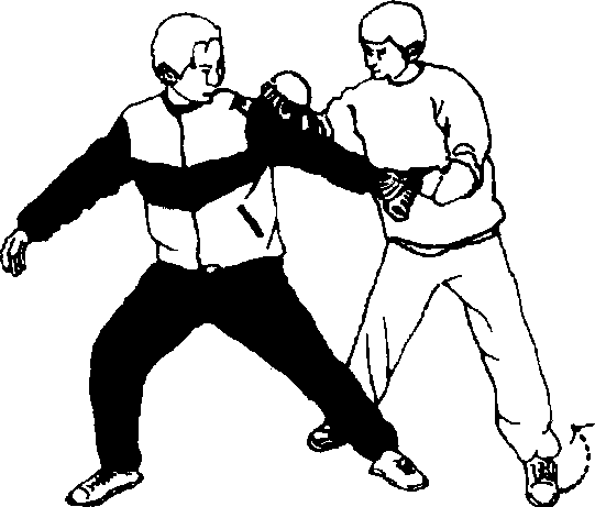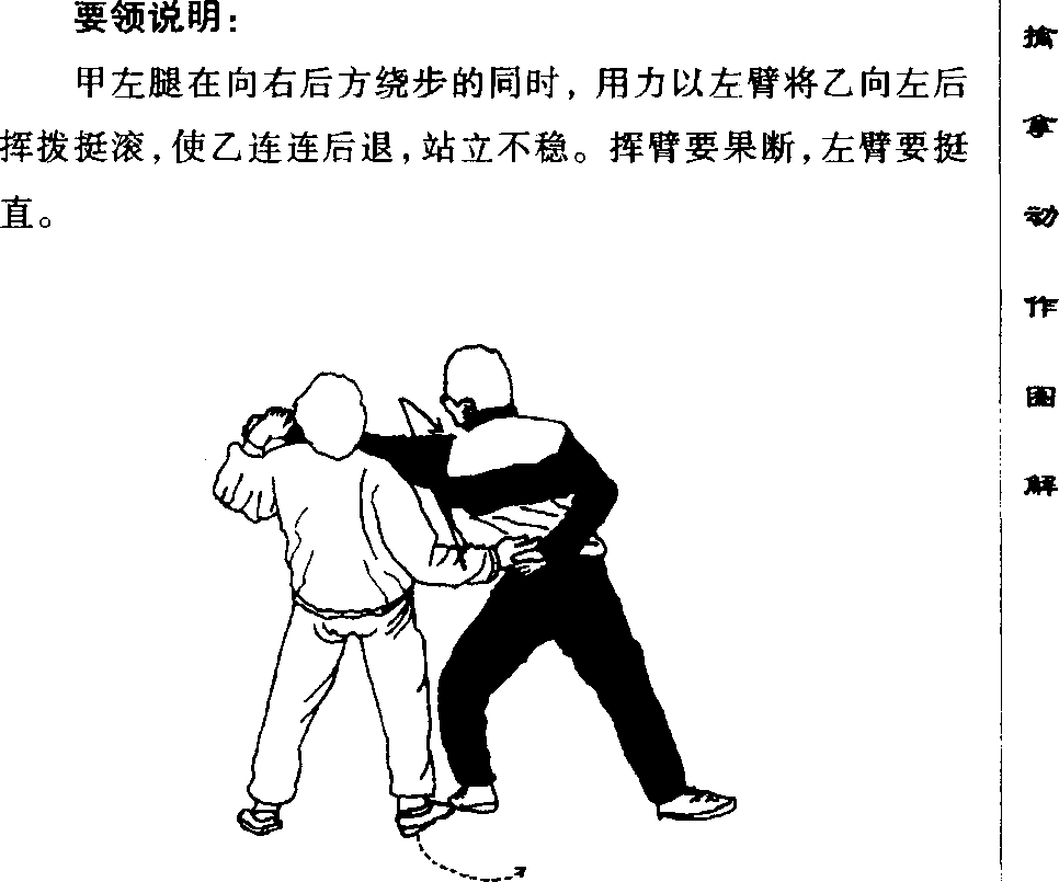 2 乙左脚向后稍退左手将甲左臂上提以右手中、食指
