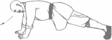 2 然后运用臂、腿之力将身撑起至离地一尺光景时缓缓将身向前探去至极度时两足向后挫身亦随之后退退至极度再行前探循环往复力尽而止。唯自始自终全身除足趾、手掌之外其余各部完全悬空不宜稍令贴地。初时行二三度之后即觉力疲气涌。习之既久次数自能逐渐增加。