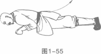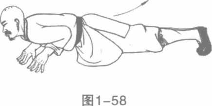 1 先将身伏卧于地各部挺直脚趾尖支地两手则置于头部之两旁指尖向前掌心贴地。(图1-51)