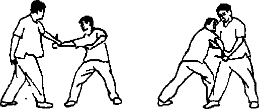 (2)甲上右步右手举匕首向乙左侧面劈剌乙立即用左小臂上格井外翻抓住对方纭小臂用力拉外旋。图八(2)〕