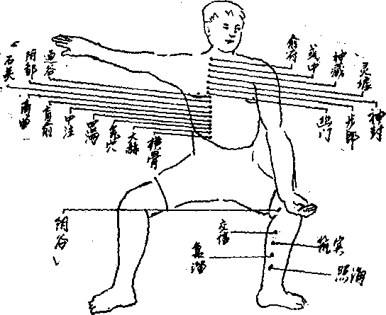 (附注)尚有燕尾一穴在背面尾椎骨后又臃外二穴在腿部外面均未绘出