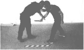 动作要领在戒备姿势基础上两臂交叉格挡来自身体侧面的袭击要求右手在下左手在上两臂肌肉绷紧以增强抗击强度(见图4-25)。
