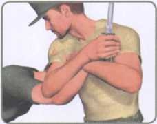 然后迅速屈肘内旋以肘窝部位托夹住对方
