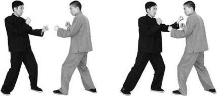 抽撞拳多是在逼近时出招攻击无论是否攻击到对手均要及时采取踢法迅速攻击对手下路。