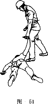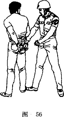 颈部将其左手反拧到背后铐上。这种铐法无特殊情况戒用(见图-55)