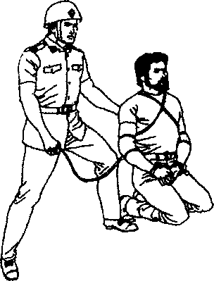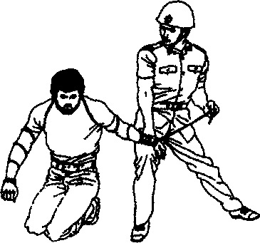 在捕获歹徒后首先要对歹徒施以戒具。这样既可防止歹徒