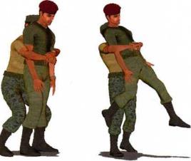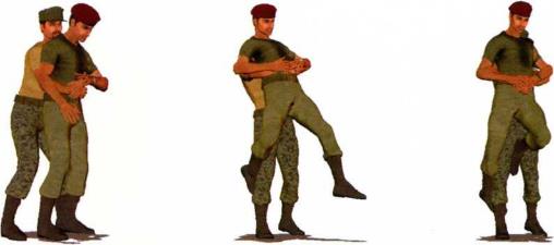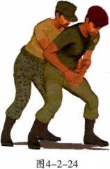 图4-2-21 图4-2-22 图4-2-23图4-2-21 图4-2-22 图4-2-23(1)敌人由身后对我发动袭击突然伸出双手拦腰将我抱住并用力向上提抱欲将我举起(图4-2-21)。