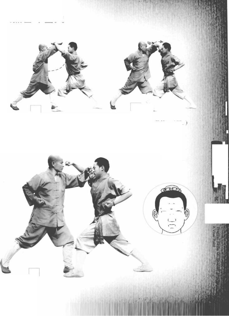 (3)然后迅速左拳变凤点拳击打他面部印堂穴。(图3)