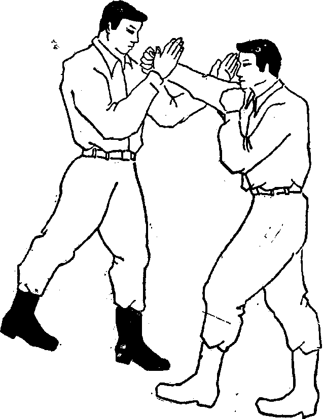 1 当敌用右直拳攻打军警时军警用双手猛夹敌臂(图
