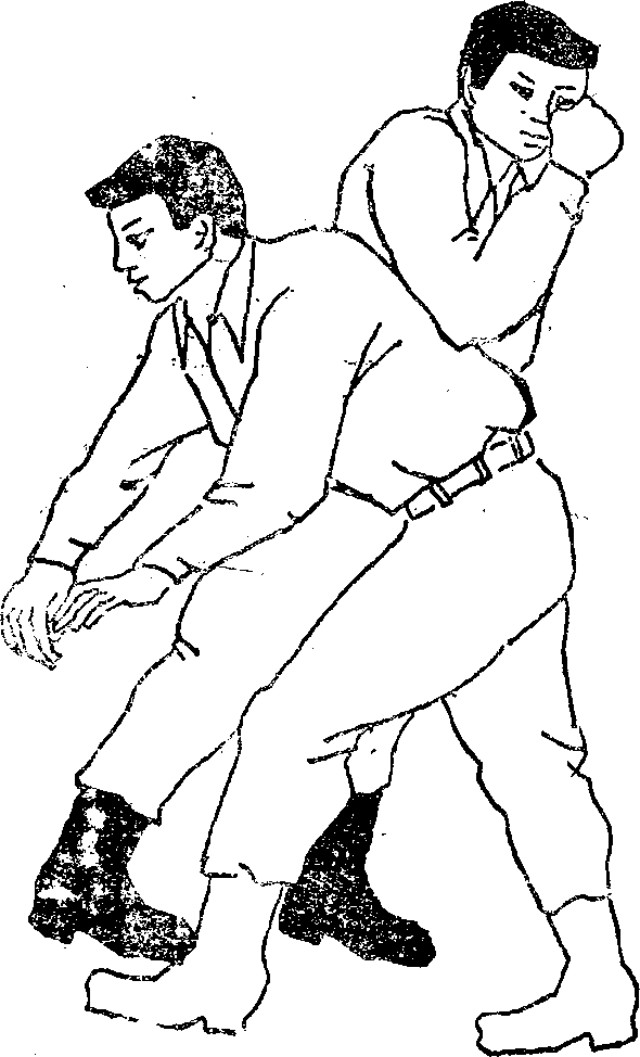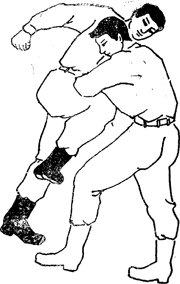 身体迅速右转跳起猛坐敌背部双手摆拳打击敌头部(图3—7)
