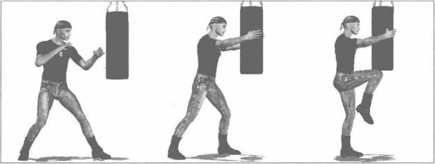 以上动作可以反复进行左右膝连续撞击沙包底部。
