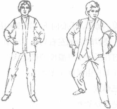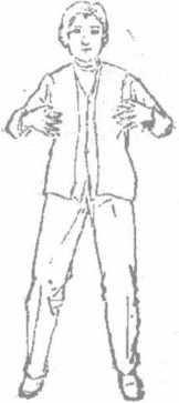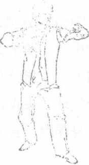 (2)右脚不动左脚以脚跟为轴向右扭转45。同时身体半面向右转两臂仍垂在身体两侧眼仍看原来的方向(图4-7),