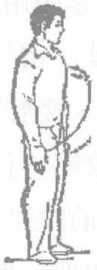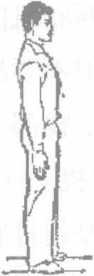 (1)身体直立两臂自然下垂头要端正两脚脚跟靠拢,脚尖外展成900眼向前平看(图4-6)