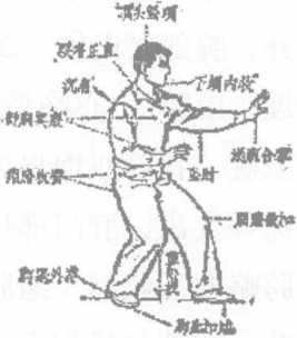 以上各部的要点练习时务要处处安排好不可忽略其一部分。这个姿势对培养练习者的内在力量调节呼吸很有帮助。更重要的是它集中地体现了内劲基本要求和特点初学者可以从这里体会到锻炼的要点打好基本功给以后的练习铺平道路。就是有一定基础的人也要经常做这种桩步的练习以便进一步掌握拳法要领巩固桩步根基。