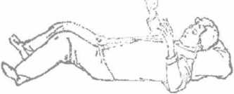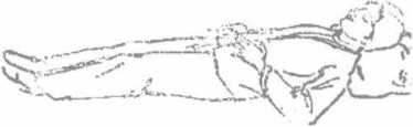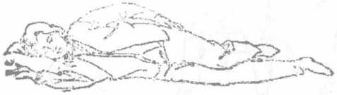 图4-18卧式四图4-18卧式四右手曲放枕边。设想自身卧于温水池里浮动静听风吹树叶沙沙响似有房沿流水滴沥声不知不觉朦胧入睡(图4-18)。