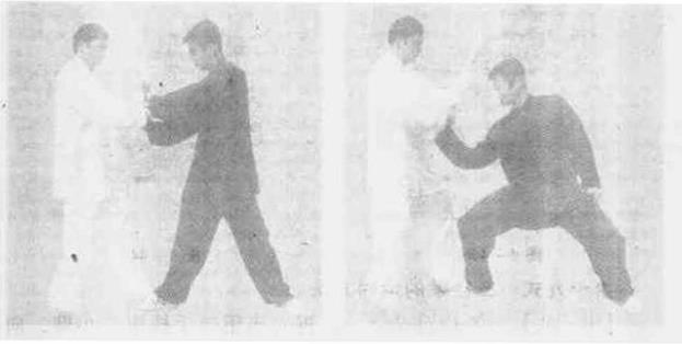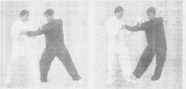 用法甲乙相对站立。乙提右脚向前上步用左手向甲
