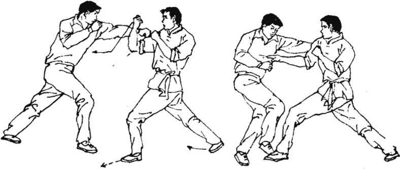 用这种方法对付因退却动作过大而使自己暴露的对手,也是很有效的。出手时应做到有手则无手打人如打偶起前手如鹤子入林须束身而进催后手如燕子取水必翻身而进沾。