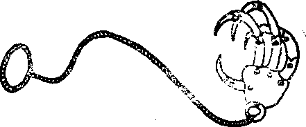 飞爪一物在暗器中可谓最厉害者。非但能伤人且能擒人。其构造为1绳1爪。爪以铁制与人手掌完全相同。惟掌面略短每指除大指外俱为3节。第1节端锐利有如鸡爪、每一节相连之处皆活络装有极小而灵活机关能使各节伸缩活动。掌面则空其中上有洞5个每指插入之地。中用一半圆形铁环横贯五指末端。掌后部嵌入1铁环环即套于半圆形中间是为总枢钮。其爪屈伸完全司于此环。盖每节小机括亦有弦索通于总索。环后亦如绳镖流星锤有软索牵连。其索亦以纯丝与头发鹿脊筋所制为佳不宜用绵绳麻绳之类。索末端挽结成一圈预备套于腕上即所谓千斤套腕。发爪着人因爪尖锋利已足使人受伤。更益以活络指节但须将索一抽则总环一着力掣动各节小机括则指竟向内猛抠如人以手抠物状爪尖立即深陷入肉万难摆脱。如不动则尚可支持若用力与挣愈
