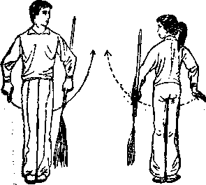 2甲乙同时向左转头两臂屈肘略提起撑国。相互注视