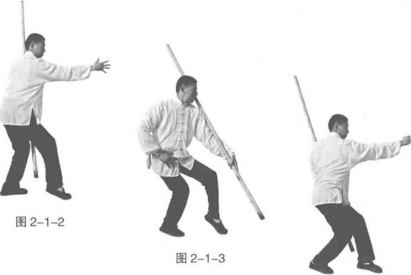图2—1—1图2—1—1说明不管是南阳系心意还是洛阳系心意,说明不管是南阳系心意还是洛阳系心意,器械演练前的标器械演练前的标疾步践窜头拳或推一个单把也可以左脚先向前踩进一步紧接着右脚过左脚向前踩出一步动作不停右脚刚一落地左脚就急过右脚向前踩出一步右脚在后紧随半步保持重心的稳固同时右拳打一把提挎劲。南阳心意有打横拳(南阳方言发音为昨拳)如挎篮起横不见横之说与形意拳的横拳劲力不同身法为起横落顺脚法为起顺落横(图2-1-2?图2-1-4)