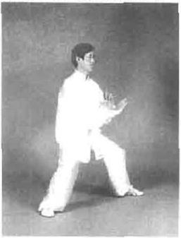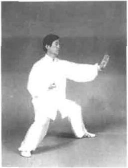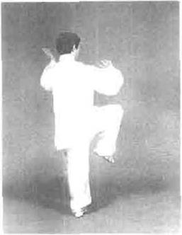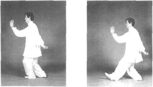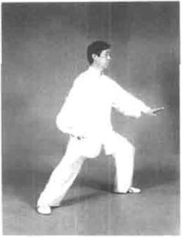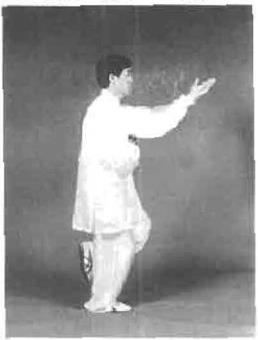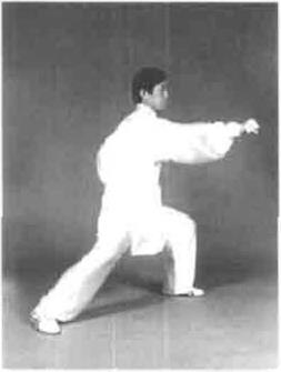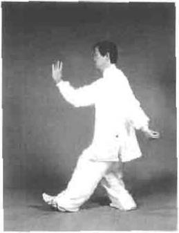 要求此势转身时重心变化要快,连进三步步法轻灵稳健在左手向前伸时左足提起并旦有里合之意,上下相随、