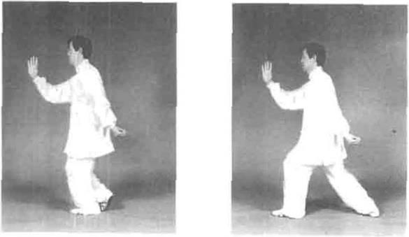 动作二身体向蹲,左脚着地闻阳保步跟进当足踏地时左足地即步这样连续上三叽促二步视的方(图3-59-图3—62)