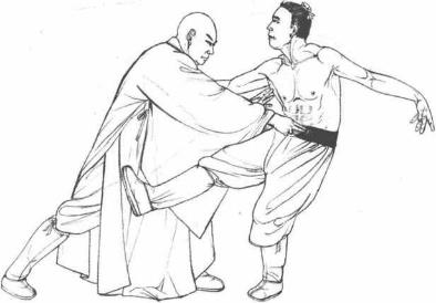 3 动作不停右手剑指紧跟而出点击敌腹部左侧肚筋穴。(图3-25)