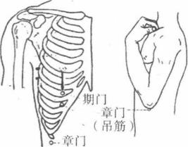 吊筋穴即章门穴属足厥阴肝经。章门穴在腋中线第1浮肋前端屈肘合腋时肘尖正对的地方就是。章门穴别名长平、季肋。