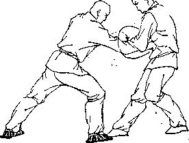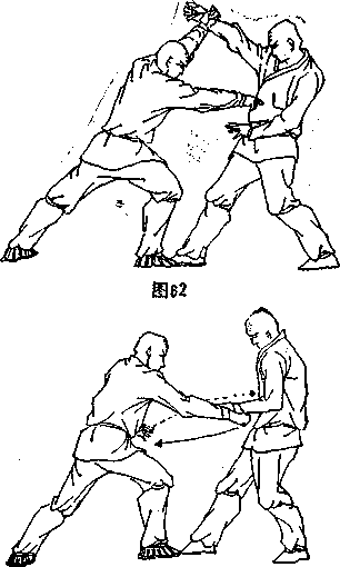 图63图63围64围641甲上右脚用右手中、食二指直点乙的巨厥穴乙吸胸坐步未被点着并用其左手欲抓甲右手(图63)2甲右手随即下沉回收而甲左手乘机直点乙的巨厥穴乙用其右手欲抓按甲左手又未被点中(图64)。3甲左