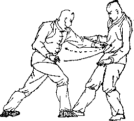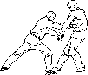 右拳击打乙腹部乙用左手压甲右手(图66)。2甲用