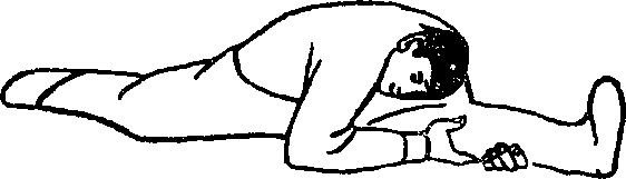 (3)放开左手上身直起向左侧倒于左腿上岁左臂屈置胸