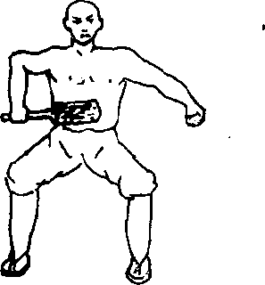 于是再练胸腹练习方法与铁布衫功、铁牛功相同可参照采用。到肌肉坚实时也还要练习运气之法。中部功如练成可继续练习腰腿。练习方法为每天骑马势站桩若干时力尽则起身散步休息片刻再站桩。等到肌肉坚实后再直立练习则腿股的肌肉会突起成小股再加上运送方法全身力量便可以任意使用即使刀枪也不容易损伤了。这就是技击家所谓内练蛤蟆气外练筋骨皮之理。
