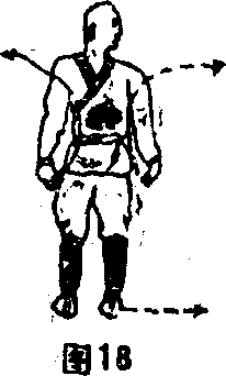 10) 削掌即举臂正掌横削掌心向下掌指向外(图19)多以横掌向前削击对方下颌和咽喉部位如刀