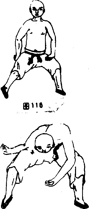 左手按于左腿面右手作雕手(图115)