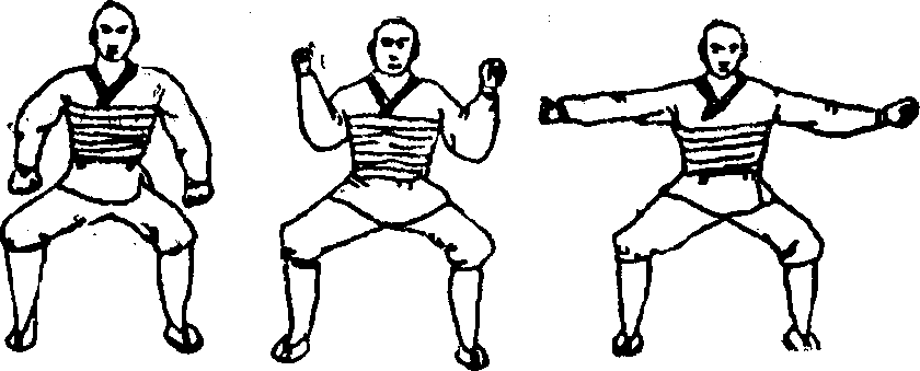 3 马步站稳两臂向两侧伸直向外涨力曲回再伸