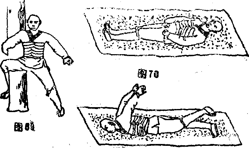 9 陲在砂里腑式绻耳图71)。肩、胸、腹、骨弟可以向砂中跌扑使上身各蠢矗接触砂练习五年后将缠绕的棉布条去掉。
