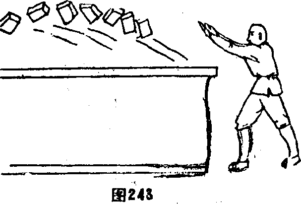 15 经年深日久岁月磨练双掌用劲发力上提可以弹出七块青石重达320斤跃起数尺飞出丈远开外(图243)。但仍要努力拼搏。